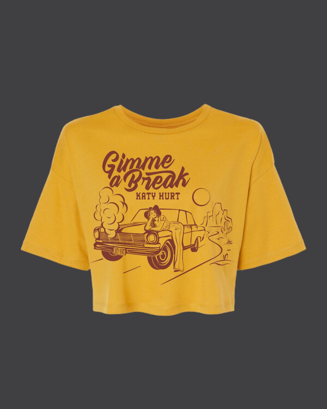 Yellow Crop Jersey Tee with screen printed graphic Side-seamed. Drop shoulder fit. 100% ringspun cotton